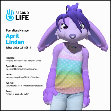 April probably came to the notice of many Second Life users through her informative and insightful blog posts that would explain What Went Wrong and Why (what I call her W4 blog posts) after significant issues.