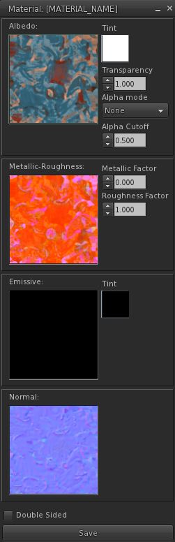 • Materials will be uploaded with an additional editor (shown right), which will allow some manipulation and delivery the materials as an inventory item when uploaded.