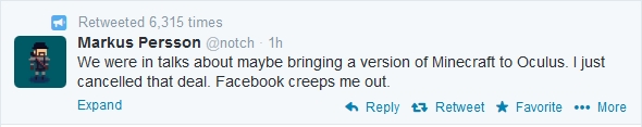 While Markus Persson of Minecraft fame responded to the news with as less favourable response, which was quickly picked-up by the games media.