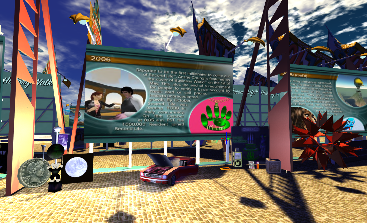 Marianne McCann’s History Walk is a must-see. Find out about the entire history of SL year-by-year, from the earliest glimmerings through to the present day. Find the year you first came in-world and read-up on the notable events.