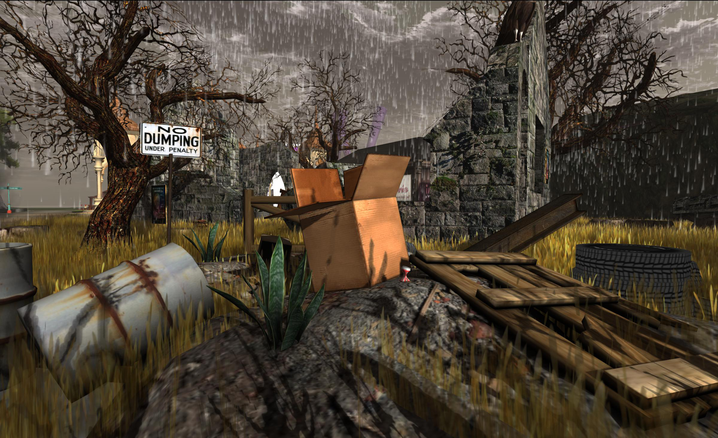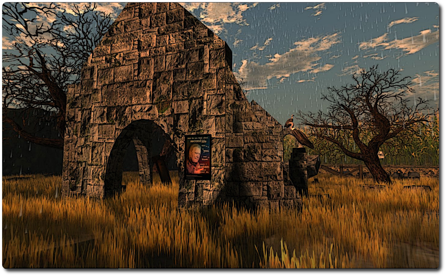 I chose this exhibit because it is it is eye-catching, simple and highly effective, making it very photogenic. The piece looks at storytelling through fantasy role-play in SL, with a focus on Ynys Seamaide, a “Celtic medieval RP” immersive environment with an “emphasis on story and character not meters or guilds.”Small this build may be compared to others, but it is worthwhile taking a look around it carefully; there are some very subtle details which can be missed in a rapid look-see.