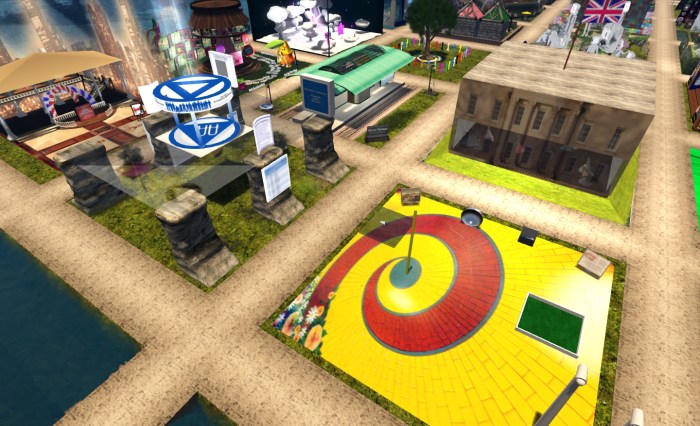 SLe Educators (lower right) AA, (left) and the VRC (centre, behind the AA pavilion) on SL9B’s Fruit Slands Party region