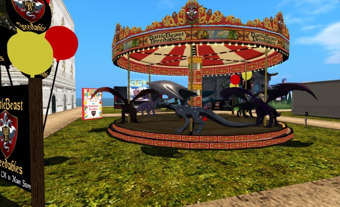 The breedables communities in SL are well represented across Party and Fun with Oceania Breedables, Biobreeds, Meeroos and BattleBeast Breedables all having dispplays – the latter’s being a delightful “dragon-go-round” carousel.
