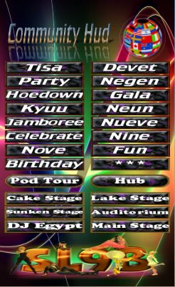 The teleport HUD, created by Bo Tiger (Bourne Denimore) provides direct access to the main exhibitor regions as well as to all of the main entertainment stages, the event auditorium area and back to both The Hub and the pod tour.