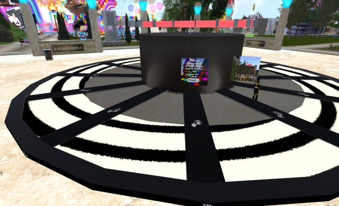 Also at The Hub are details of other SLB events taking place across the grid during the week. To see these, hop on the carousel; as you are carried around, posters of other events will pop-up in front of you – click on the radial black bars under the poster to receive a landmark to the event in question.
