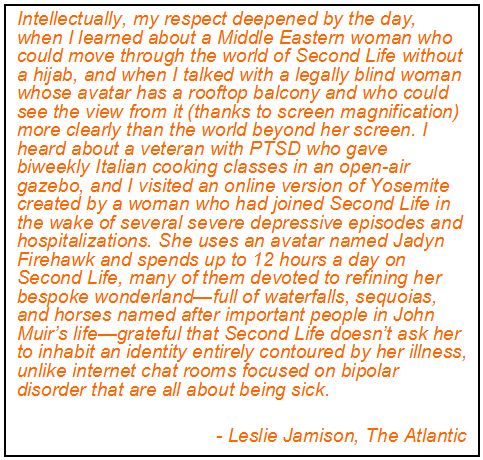 - The reiteration of the idea that virtual worlds down actually need VR or other headsets for engagement, and any focus on such hardware will, for a foreseeable future at least, remain a hurdle to potential engagement rather than a benefit