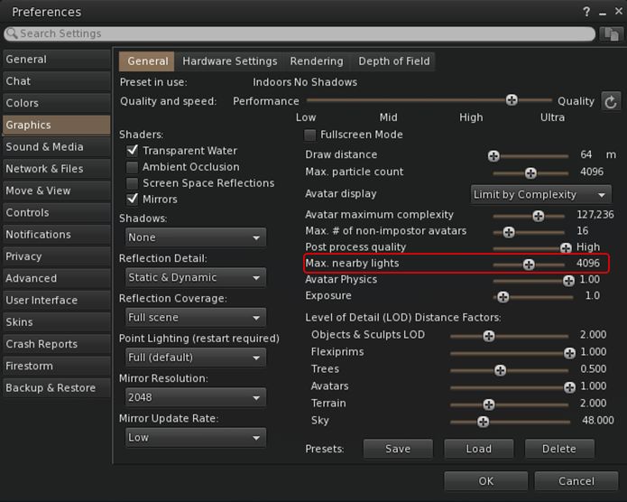 - Top Menu → Developer → Rendering → Reduce Draw Distance when VRAM is full.