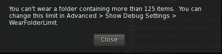 A large number of outfits were detected: [AMOUNT]. This may cause viewer hangs or disconnects. Consider reducing the number of outfits for better performance