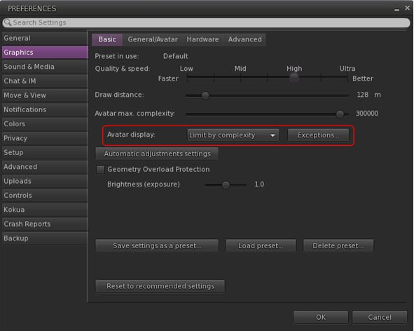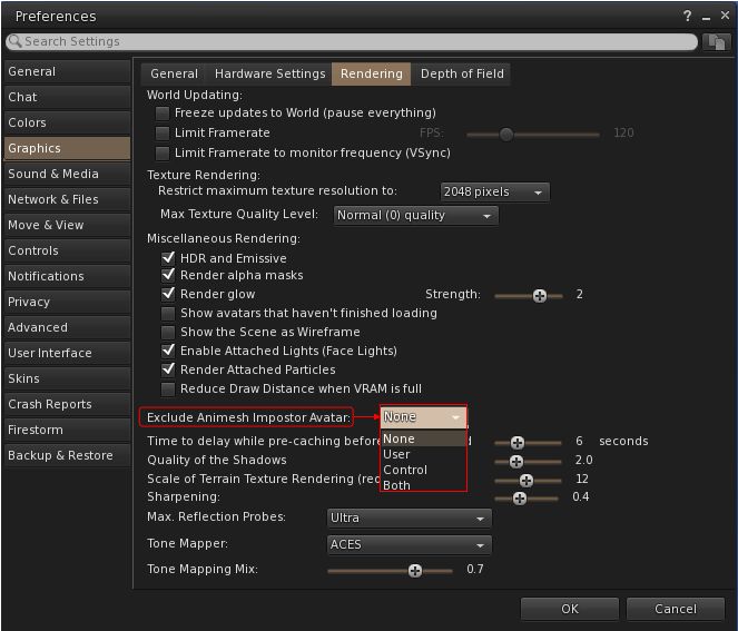 - When selected, allows a user to keep using the imposter system, but protect Animesh avatars from not animating or from having rendering issues (e.g. missing attachments).