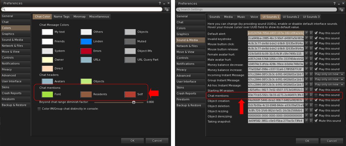 - Set chat mention colours for Font, Residents and Self: Preferences → Colors → Chat Color → Chat Mentions.