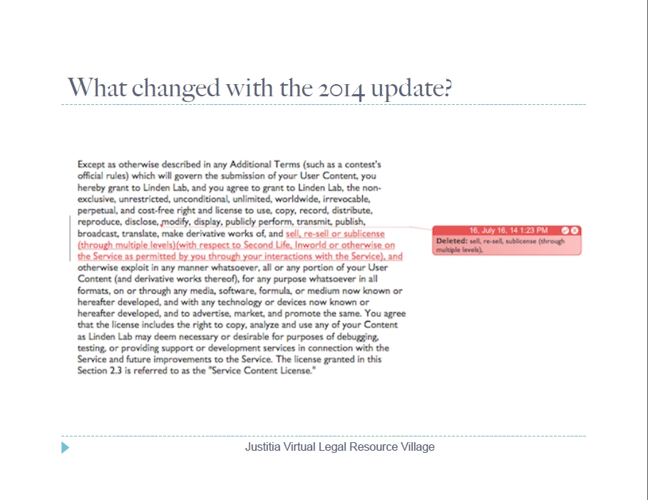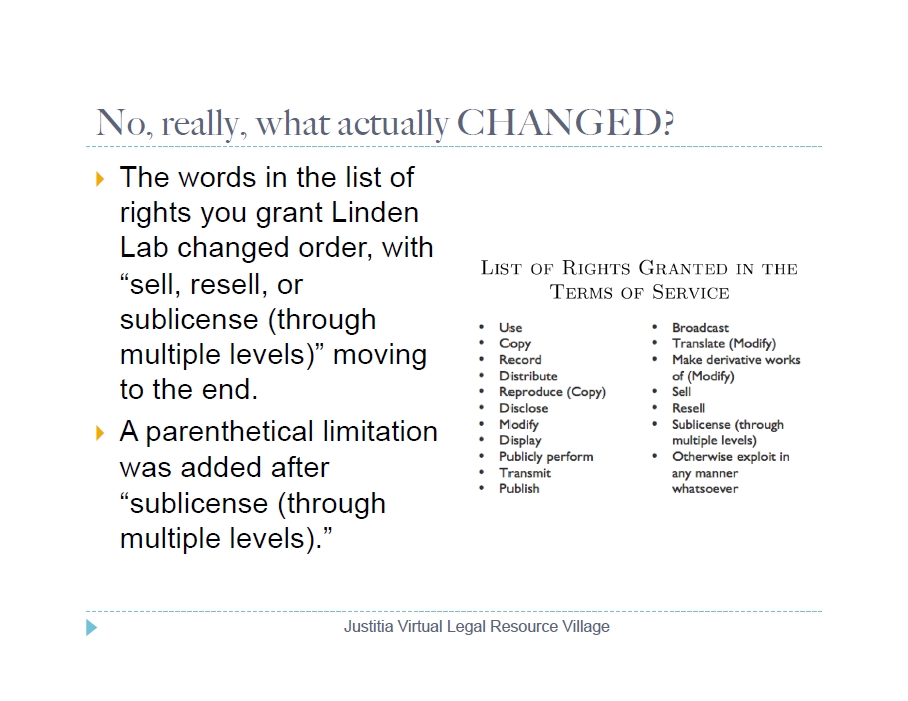 03:04: This is what they changed, right here. So really, what changed? The words on the list of the rights that you grant Linden Lab changed order. That’s really the most important thing that changed. And also a parenthetical limitation was added.