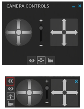 For those who would like it almost completely out-of-the-way without having to close it entirely, the control buttons now include a button (highlighted in the lower image, right) which will hide / show the actual camera movement controls, sliding them neatly out of, and into view.