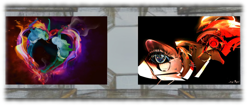 Take Codex and the image immediately to its left (both seen on the left side of the banner image for this review), apparently called Step by Step. In Codex, the sensuality of the piece is clear through the use of nudity the symbols on the torso and the posing of hands. In the piece to its left we are offered an image of a face partially hidden by the hood of a cloak; but what is visible – line of neck, sweep of cheek and hint of smile about the lips – offers a soft, subtle sensuality easily matching that of Codex.