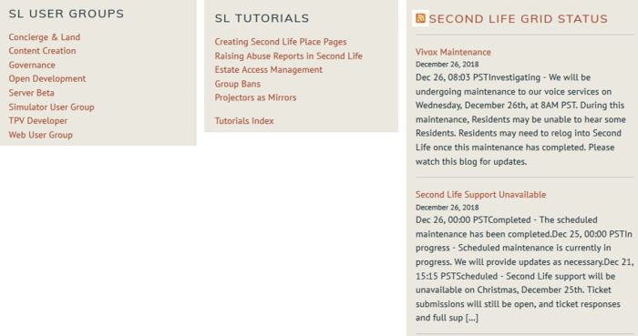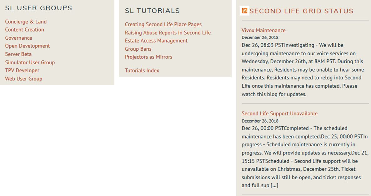 RSS Feed: this is tweak to the RSS feed from the Second Life Grid Status page, which hopefully presents updates in a clean, readable manner.