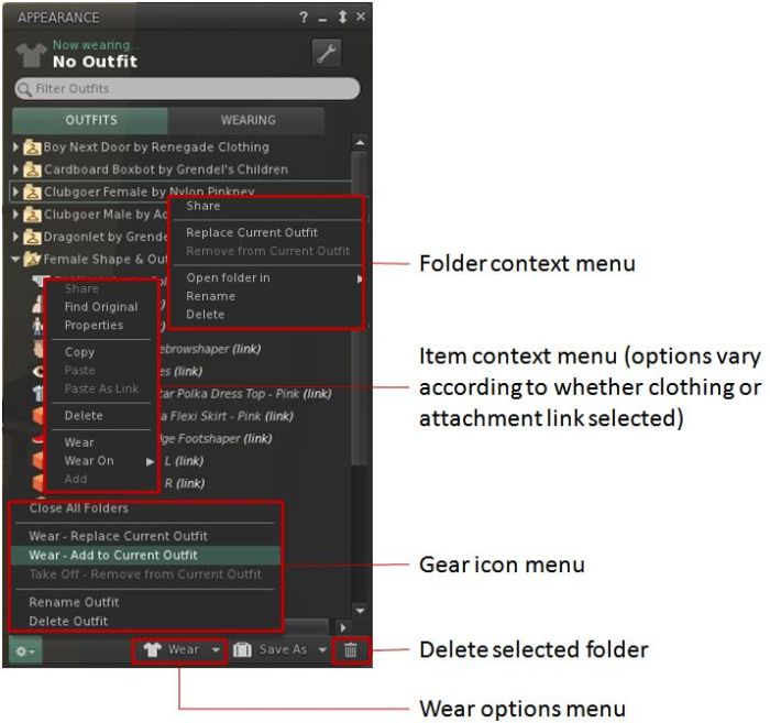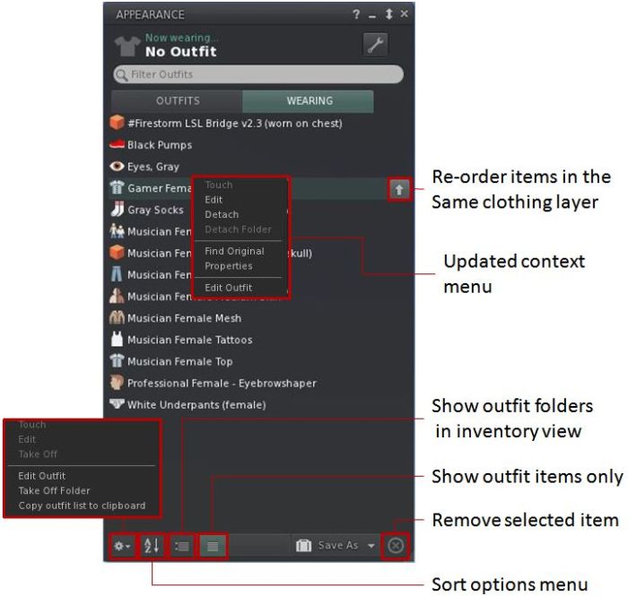 The Appearance floater has received significant work, with updates to both the Outfits and Wearing tabs.