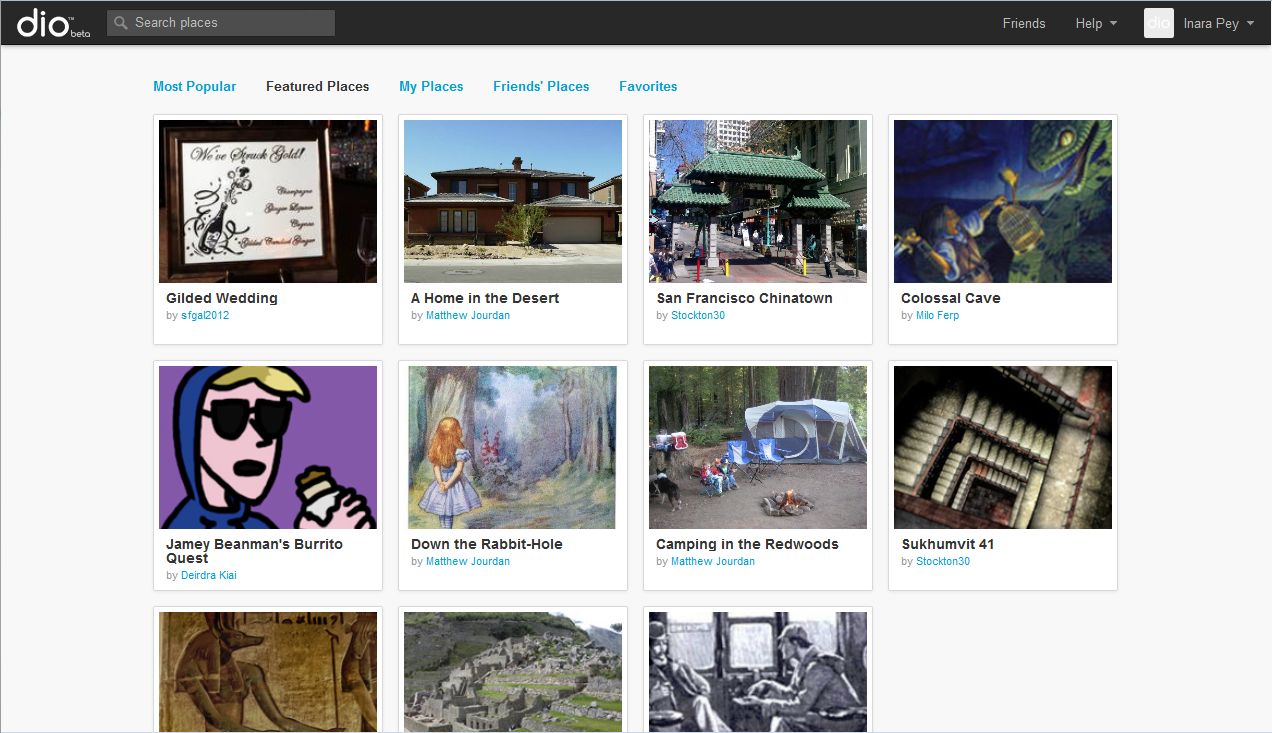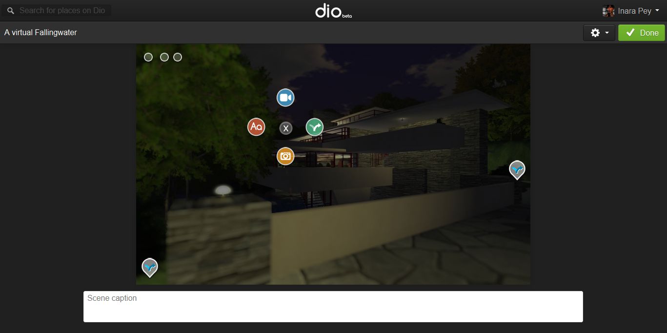 Within dio, users can create places – such as their own homes – or recreate events in their lives, such as their wedding, or make picture-based games, and so on, and then select how to share them. All of these aspects cane be combined, as dio Producer Bo Barfield explained in an interview with Forbes Magazine to mark the launch: