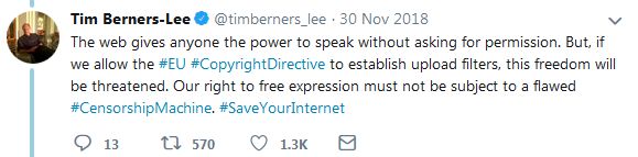– German Minister of Justice Katarina Barley on Article 13 via Twitter, March 23rd