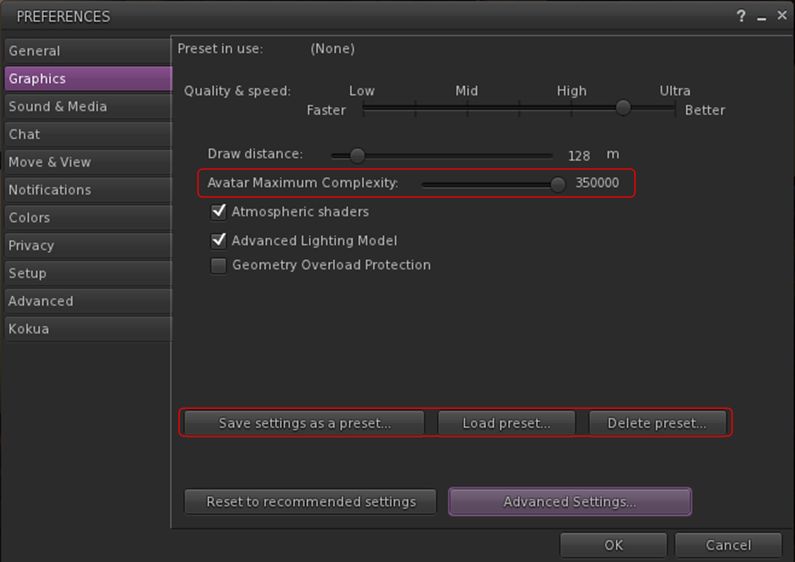 These options have been added because sometimes, when changing between one mesh avatar and another, the basic SL avatar can become deformed, resulting in it looking squished, stretched, caught between two looks, or something else. This problem is generally the result of race conditions when the avatar’s appearance is being updated, and both of these buttons are intended to correct the problem – the option to reset animations being intended to fix deformations which may be due to animations also kicking-in incorrectly / at the wrong time as well, which may cause an avatar to deform.