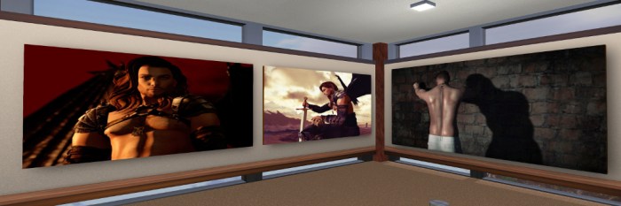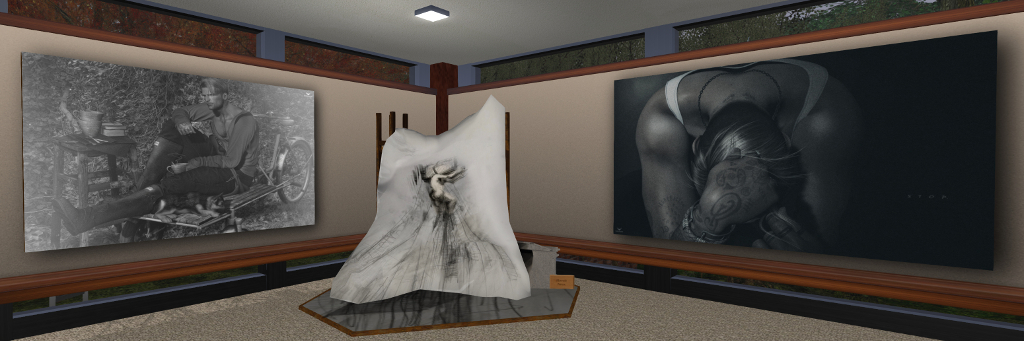 The upper floor of the gallery displays work by three members of the Men in Motion dance troupe – photographer and dance choreographer Antonio Atovio, Men In Motion founder Sebastain Bourne, who marks his work with as little post-processing as possible to give it a natural edge; and Quient, who came to SL as an explorer who used the platform to help educate his daughter, taking her on visits to in-world galleries and museums, before himself becoming enraptured with dance in SL and the opportunities for photography.