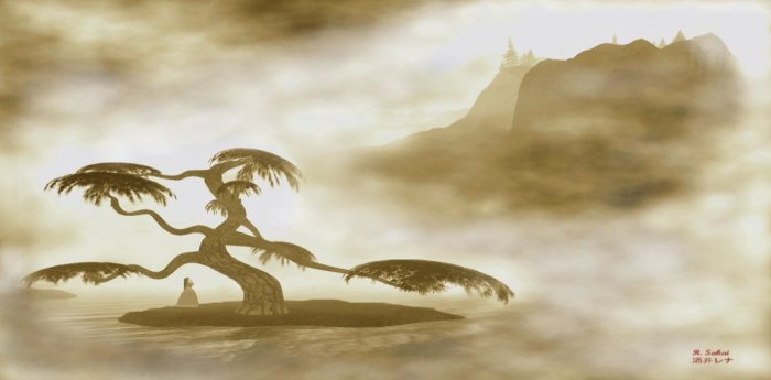 However, there is one last image I must reproduce here; just a few days after meeting Himitu for the first time – a meeting of pure chance (or possibly serendipity) while browsing a shopping mall – she asked me if I would consider posing for her; a request that was in and of itself utterly flattering. Of course, ego demanded that I did just that; I had no idea what to expect, but to be honest, anything I had imagined would have faded into nothing when compared to the picture she unveiled to me earlier today – a picture that honestly moves me in ways that I cannot express. It is called Serenity and within it, Himitu has captured not only my avatar, but also my very genuine love of the Orient. That she has done so, and so perfectly, is testament not only to her skill as an artist – but also to her insight as a person. All I can do is thank her, deeply and sincerely and encourage all of you, again, to go and look at her work – and leave comments!
