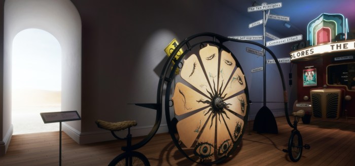 The spawn point for the experience is very mindful of the cabin designs seen in 1979’s Star Trek: The Motion Picture (ST:TMP), complete with corner lighting column. Here one can listen to an introduction to the Nexus from Rod Roddenberry before passing through the waiting door into a ship’s corridor.
