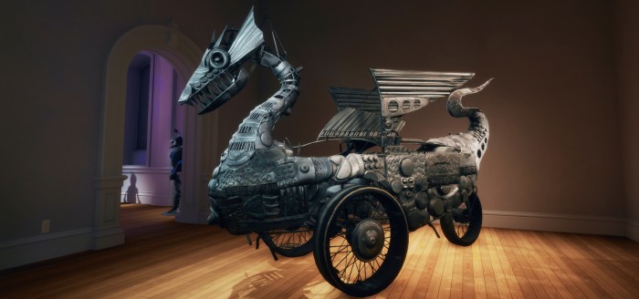 This leads to the first display room, which, other than the couch at the far end is a little suggestive of the engineering space found in the Enterprise-D of Next Generation fame. It i dominated by a model of the McQuarrie concept for a radically altered USS Enterprise design, which is seated on what could otherwise be taken to be representative of Geordi La Forge’s engineering table.