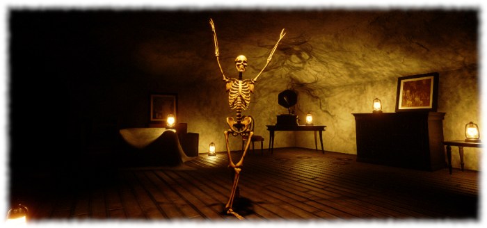 Wall panels also provide text information, and collision volumes before wall and free-standing displays will trigger audio explanations of images and models (VR users can press the audio buttons alongside display sections). This means that HWAM works for both VR and Desktop users, providing information equally to both – kudos to the Sansar Studios team for this!