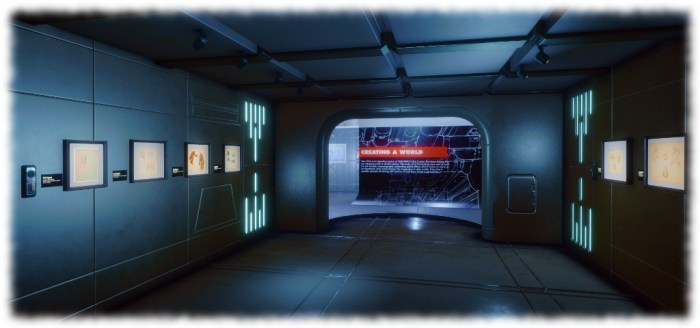 The Hollywood Art Museum (HWAM) opened in Sansar on Saturday, December 9th, 2017. A joint endeavour between Sansar Studios and renowned director, designer, writer, producer, and practical effects professional, Greg Aronowitz. Mr. Aronowitz – whose credits such as Jurassic Park: Lost World, X-Files, Saving Private Ryan, Contact, Terminator 2, and Dark Crystal: Age of Resistance – is an avid collector who has amassed an incredible collection of Hollywood production art, from storyboards to costume sketches, concept drawings, models, and more.