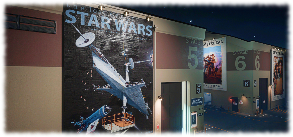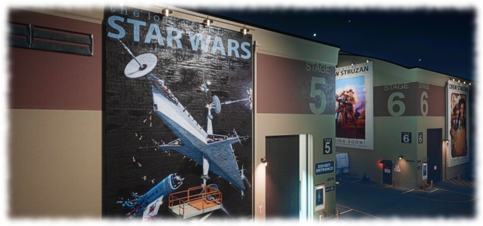 Facing the spawn point are two massive soundstages (which also carry a similarity to those of the Warner Brothers studios). These provide the first clue on how exhibitions at HWAM are to be handled: the entrance to each is in fact a teleport point to an exhibition. Right now, only Stage 5 is accessible, a huge poster on the wall announcing it as the Star Wars exhibition. However, Stage 6, just across the way will provide access to an exhibition of Drew Struzan’s magnificent art.
