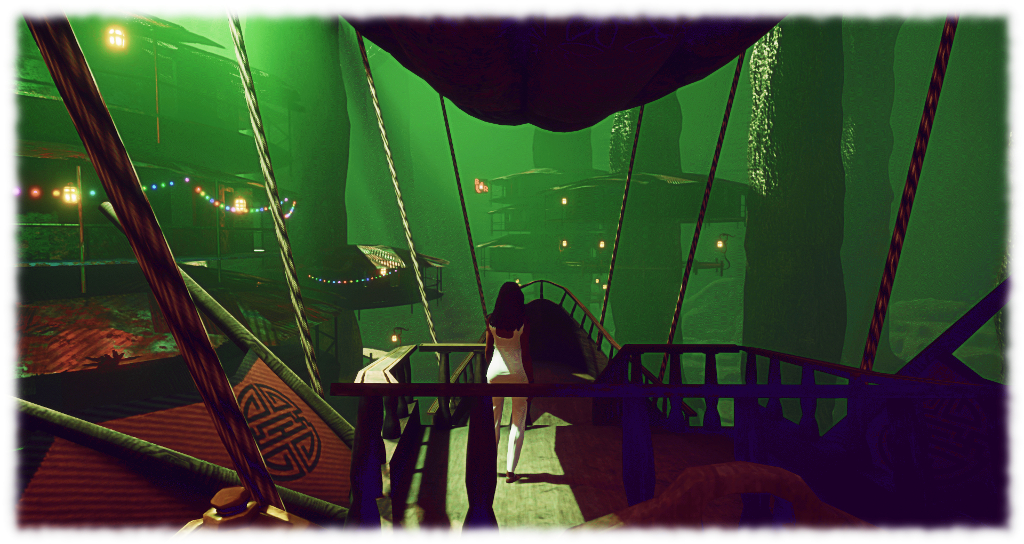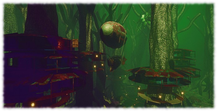 Darkwood Forest is a beautifully defined setting, restful, a little haunting in style – but not in a bad way – and richly atmospheric. The airship, the boat (which can be boarded via SHIFT-click teleport) and elevator are all very smoothly done, and the vertical nature of the setting, with the tree platforms and buildings, make it something of a unique setting.