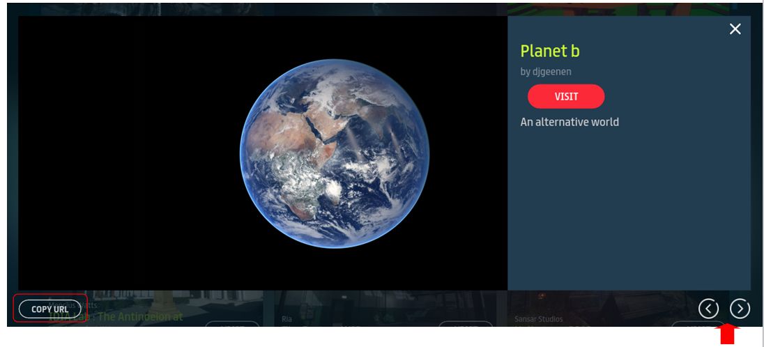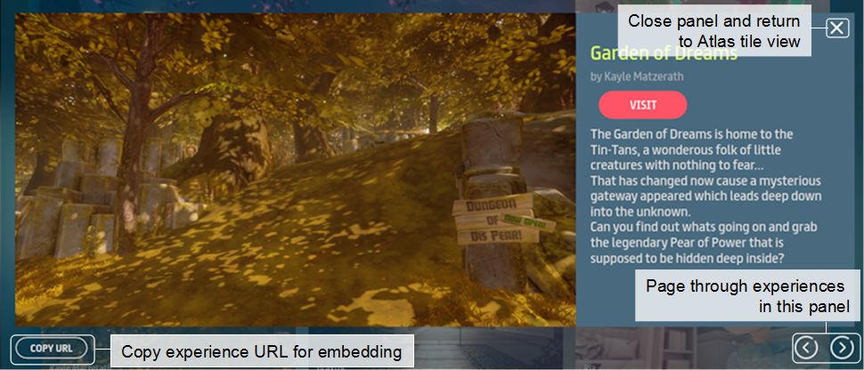 - Click the creator’s name to list all experiences by the same creator & select any of them to visit it.