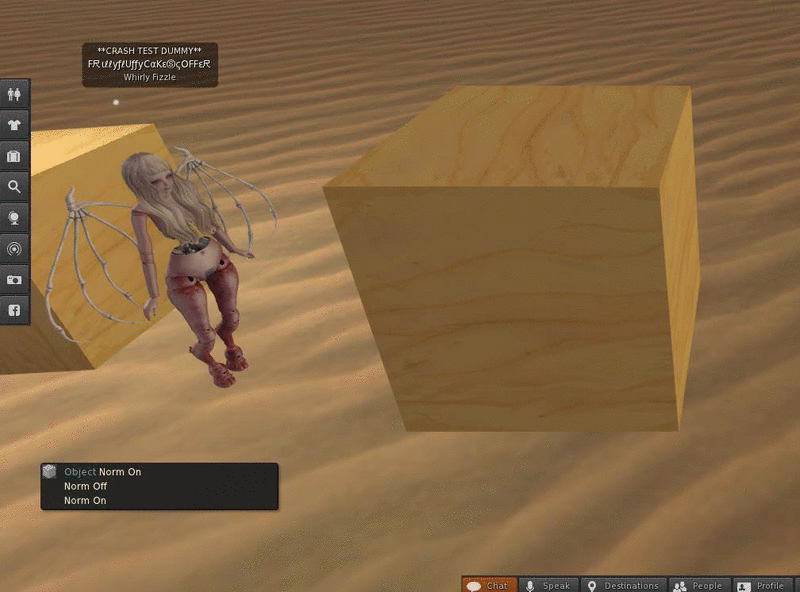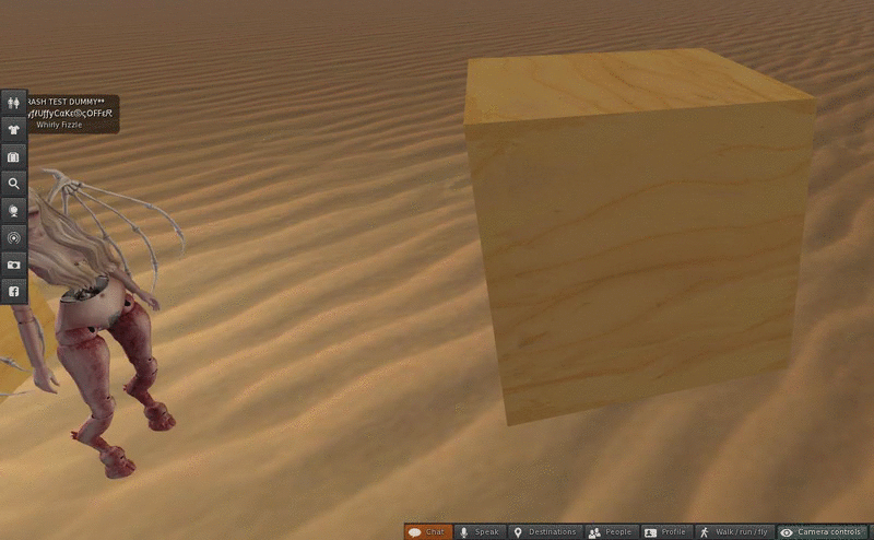 In terms of the attachment ID and valid attachment points, one group of users who will be affected by the update are those on Firestorm 4.4.2, which uses an invalid attachment point ID for the Firestorm Bridge. Such users will only be affected if they log-in to an updated RC channel (keeping in mind this code will likely be deployed grid-wide in week #47), with the result that the bridge creation process will fail, leaving them with a boulder belly – a default rock shape embedded in their avatar.