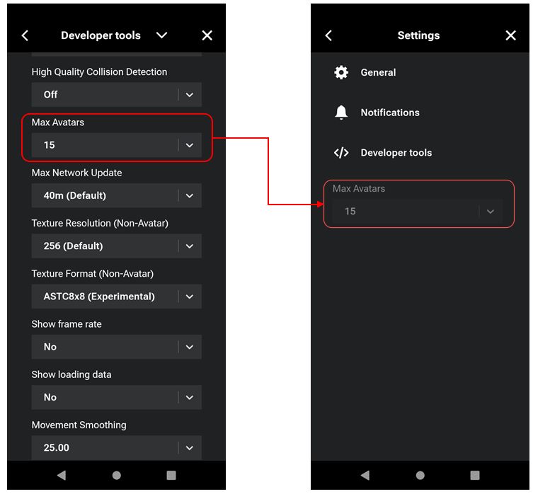 - A performance index now estimates your device’s power using real-world benchmarks. Default settings—like draw distance (how far you can see) and max avatars (how many avatars are shown) —automatically scale to fit your device’s capabilities.