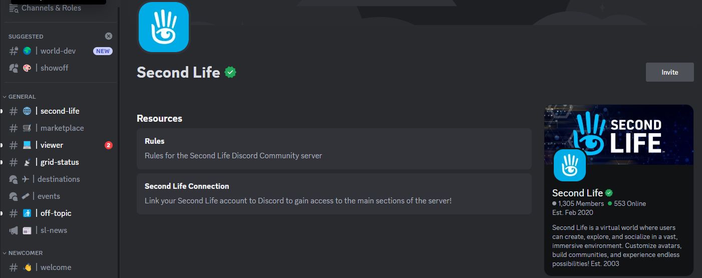 - You will be invited to join the Second Life Discord Server.