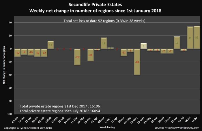 As Tyche indicates, these increases have helped slow the overall rate of private region attrition to just 0.3% – a net loss of 52 private regions between January 1st, 2018 and July 15th, 2018. By comparison, some 326 private regions were lost to the grid between January 1st and July 16th, 2017 (with an overall net loss of 667 private regions through the entire year).