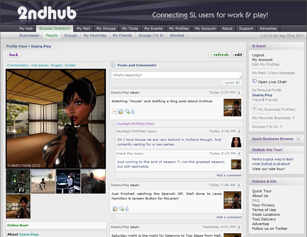 2ndHub is a social media site specifically developed for users of Second Life. In this 2-part review, I take a tour of the site and look at the various features and options.