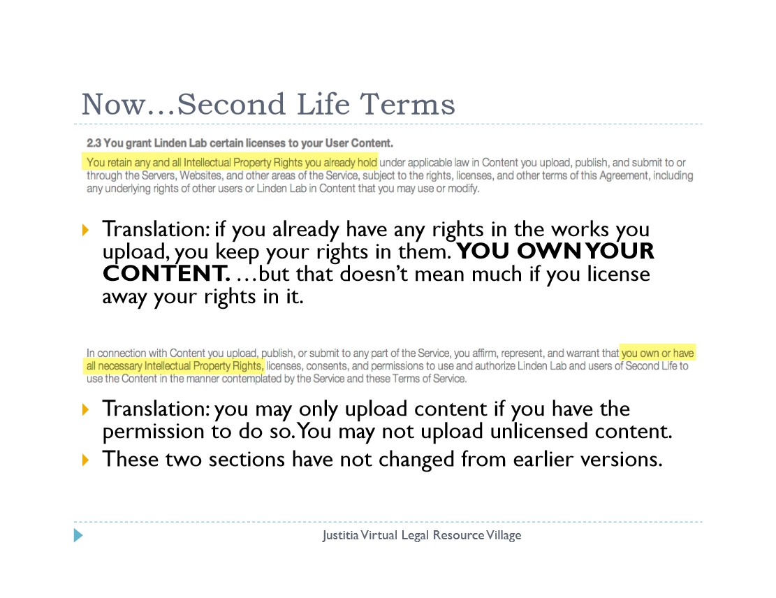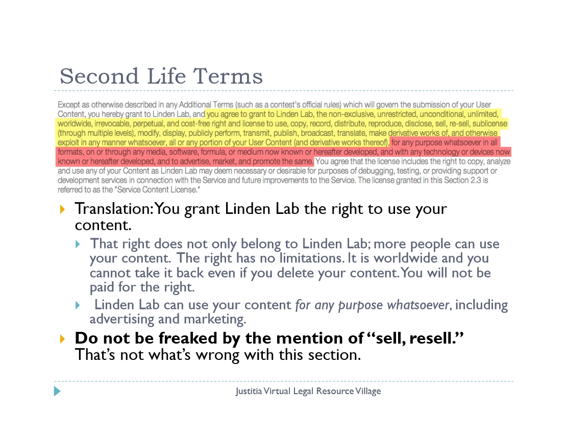 09:49: Now Let’s look at the Second Life terms of service. We’ll go one-by one:
